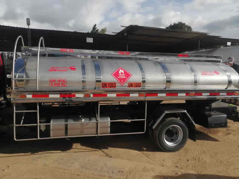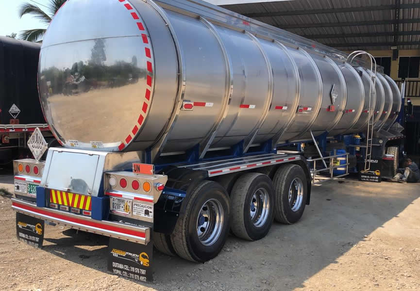 Construimos tanques para diferentes vehículos desde pickup, camiones sencillos y doble troques y para semirremolques de 12.60 mts - 13 mts de longitud en lámina en acero inoxidable o hr de 4 mm, anillados o en U, con kit de derrame, pasarela, manjoles de chancleta y válvulas de 6 pulgadas, con remolque o tráiler con suspensión neumática o rígida de 2 - 3 ejes, ancho de 2.60 mts, con capacidad de carga de 35 ton, en calidad A50 y estructura en perfil para alta resistencia en el transporte de crudo, petroquimicos, agua potable o leche. Diseño efectuados de acuerdo al requerimiento del cliente, las terminaciones son en pintura poliuretano de calidad, logotipos y luces led de nueva generación con accesorios totalmente americanos, como ejes, sistema de frenos y repuestos.